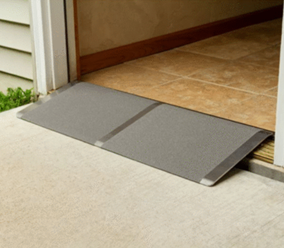 Always make a smooth entrance with our threshold aluminium ramps for wheelchairs, scooters or powerchairs. They are simple to install and highly portable, this plate-style threshold ramp is available in variety or lengths and widths to fit most doorways inside and out.